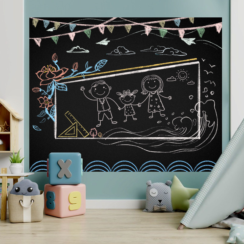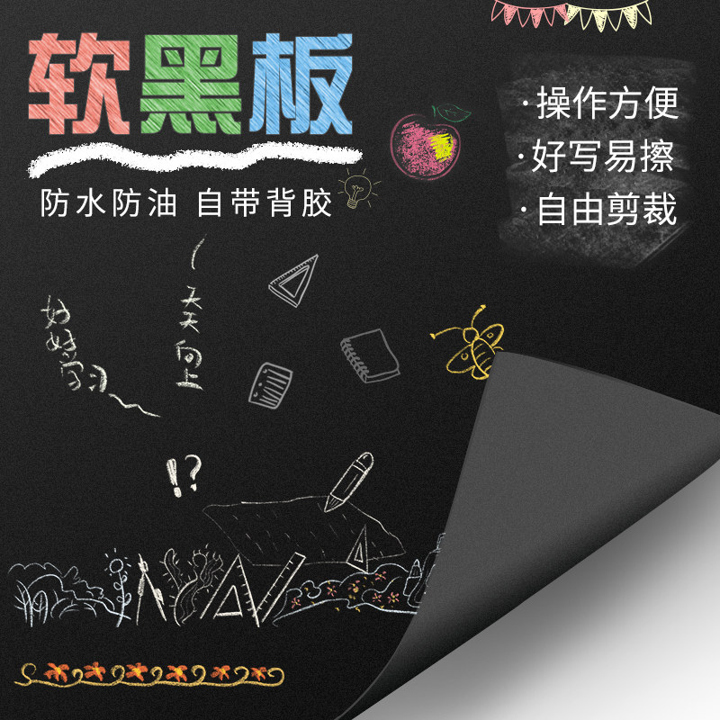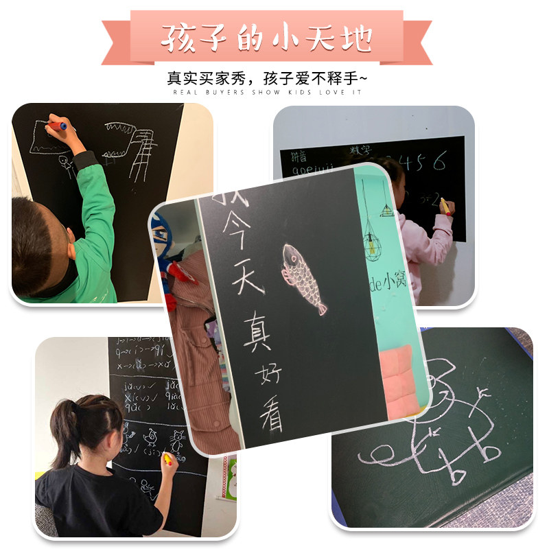 黑板墙贴家用可移除小孩涂鸦墙纸自粘可擦写白板贴纸儿童房装饰画