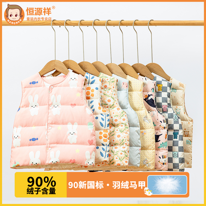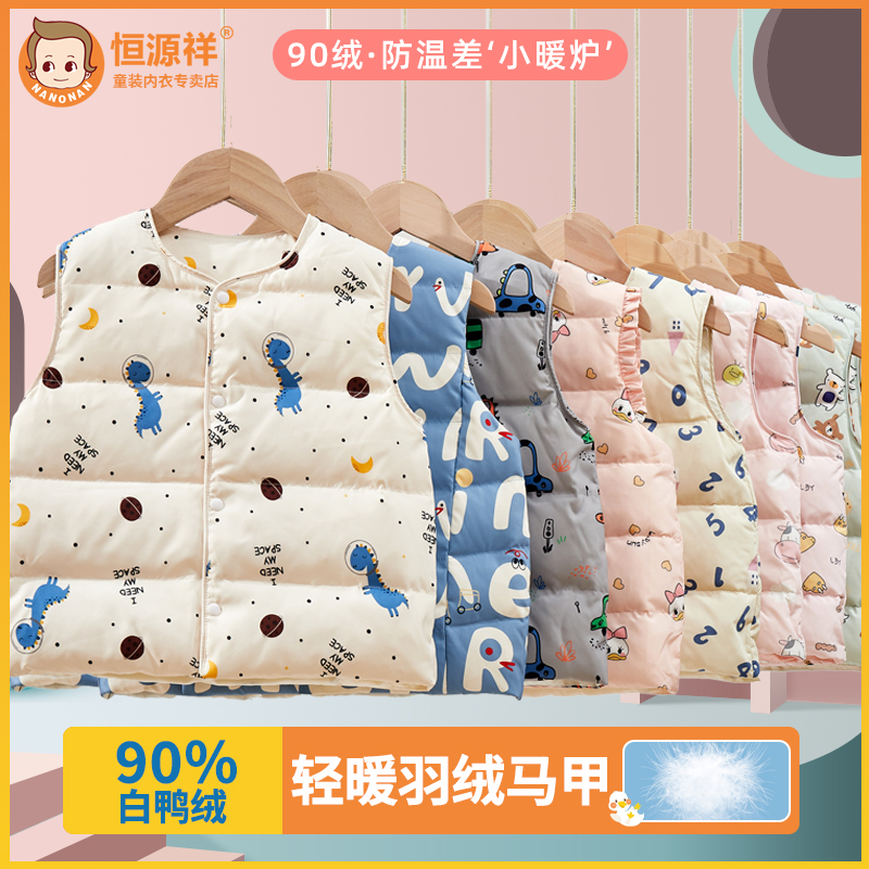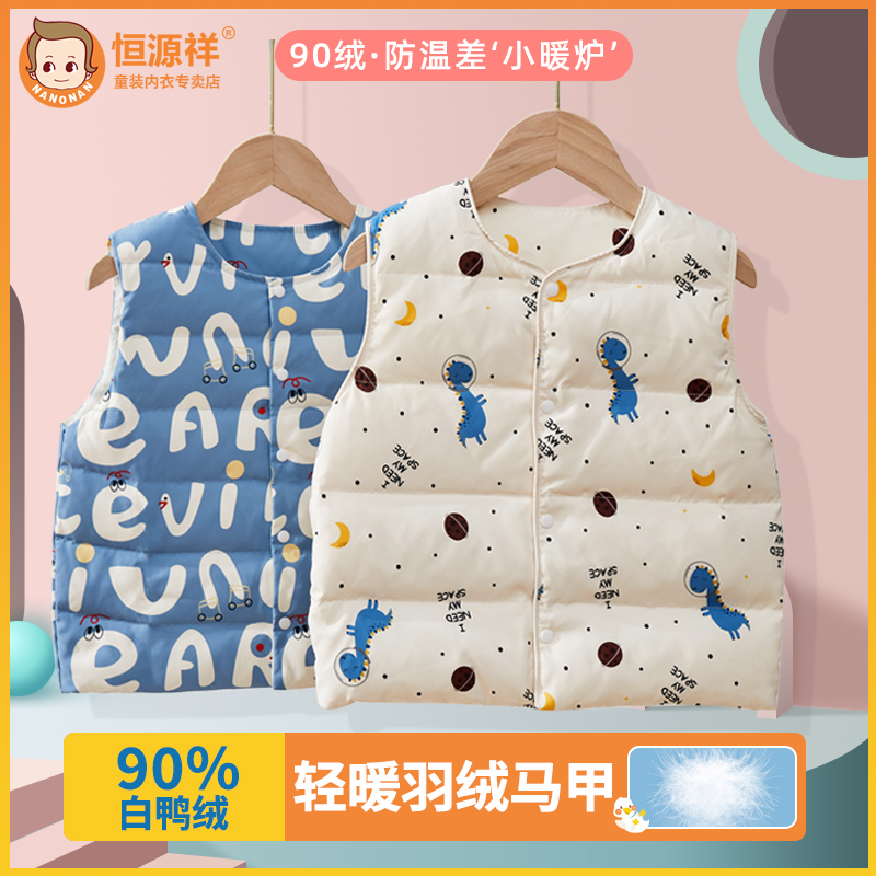 恒源祥儿童羽绒马甲男童宝宝背心女童秋冬内穿外穿小童马夹内胆