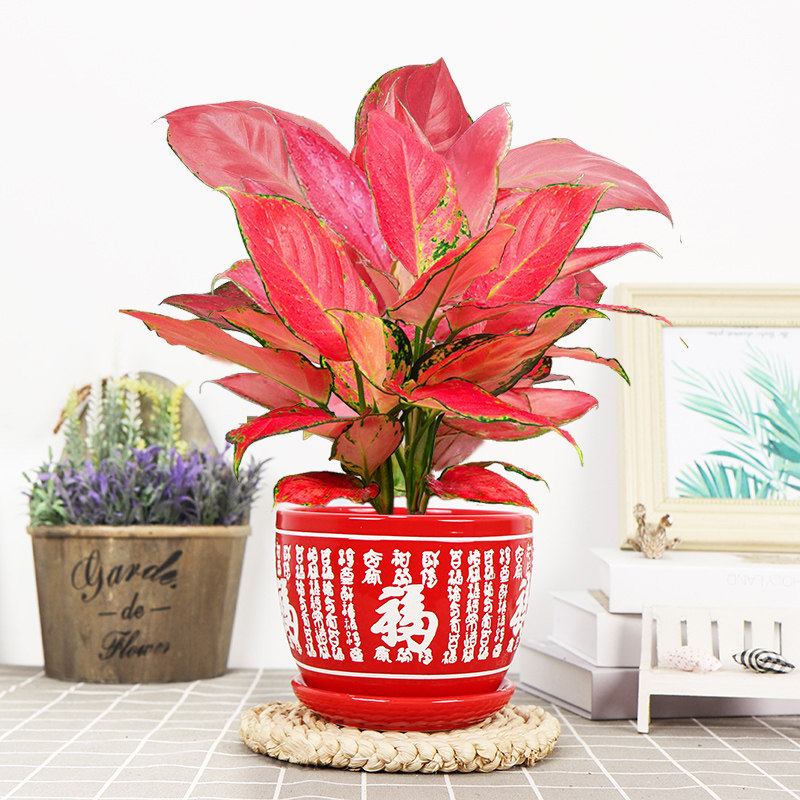 吉利红红色卧室陶瓷盆加仑盆景
