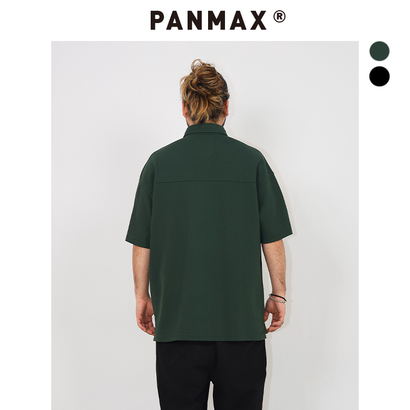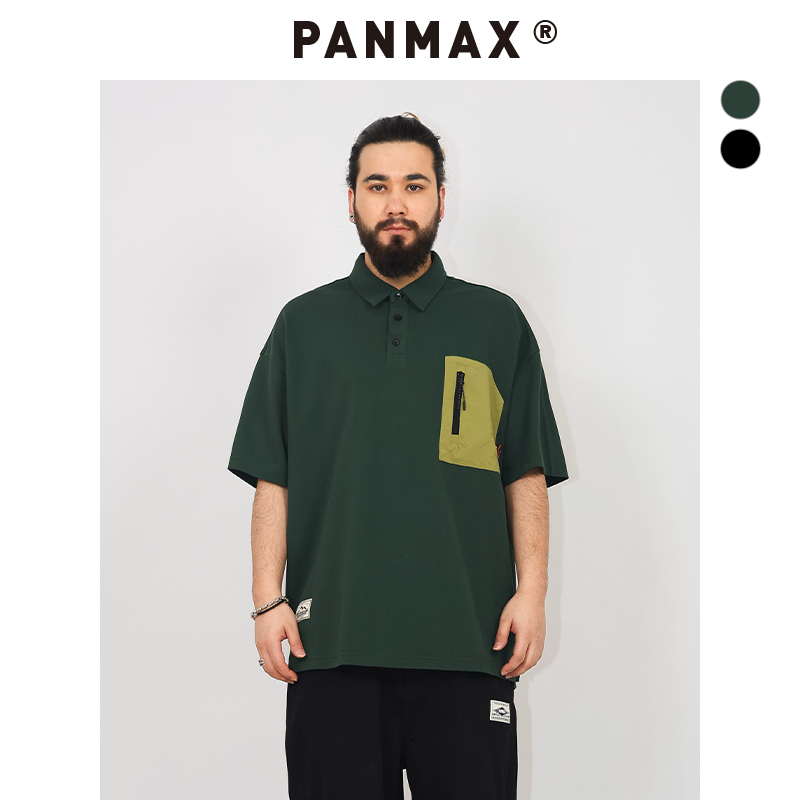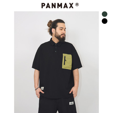 PANMAX加肥加大码休闲宽松重磅拼接撞色透气翻领胖男士短袖polo衫
