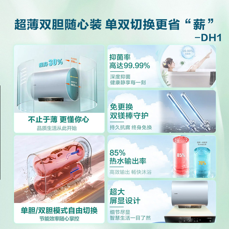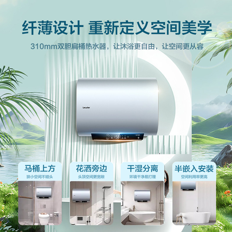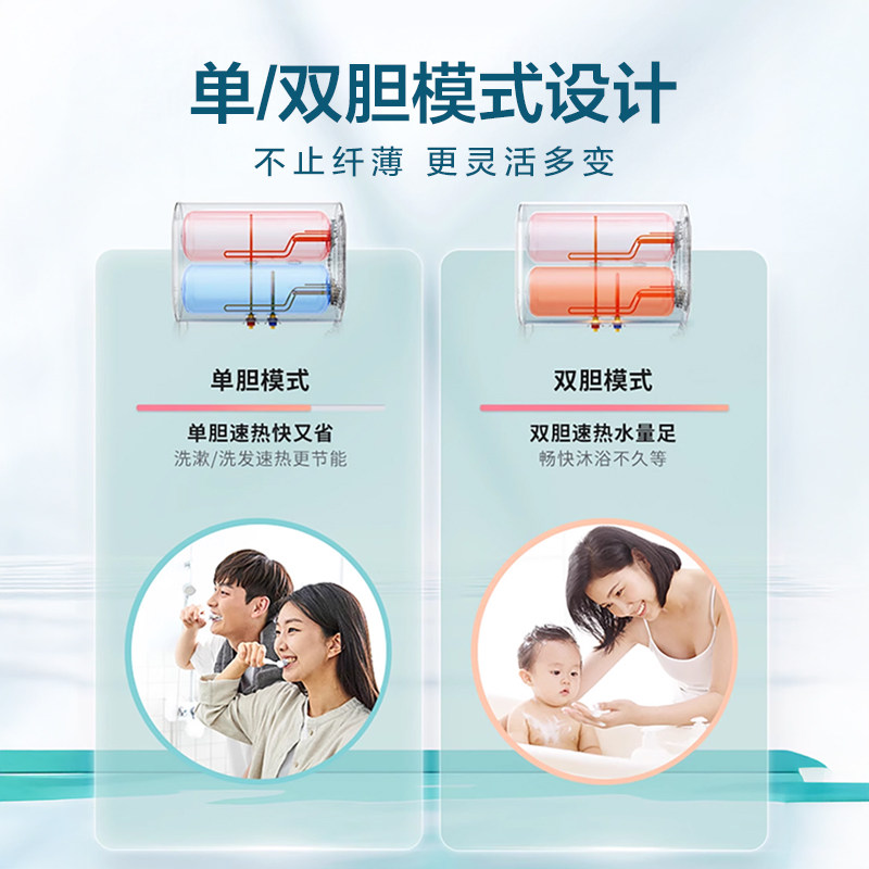 海尔超薄扁桶家用洗澡电热水器双胆速热一级能效50L60升官方正品