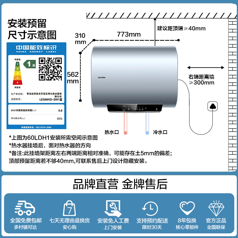海尔电热水器60升扁桶一级能效