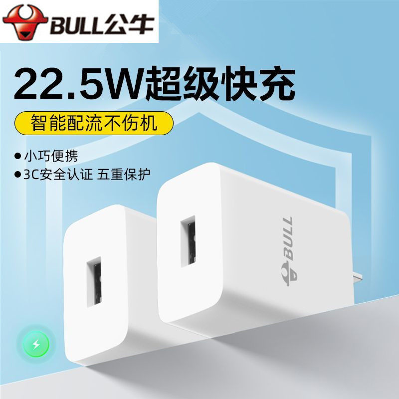 公牛充电头安卓快充usb手机充电器5v2a插头22.5w闪充10W适用苹果华为vivo荣耀oppo台灯平板蓝牙耳机通用正品A