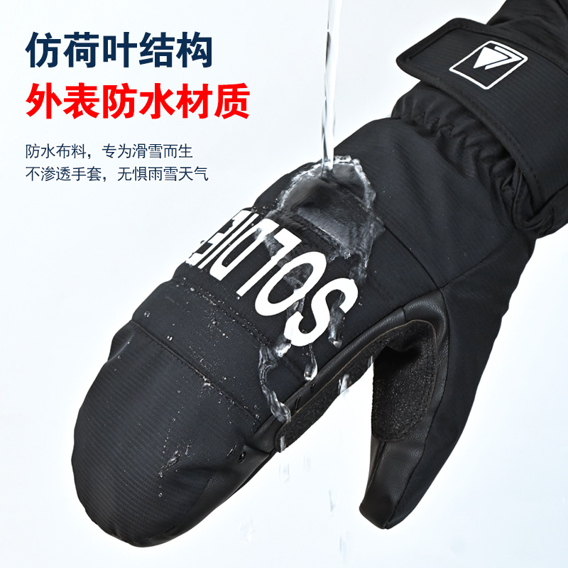 25新款滑雪闷子手套防风防水保暖皮质男女同款内五指护腕刻滑触屏