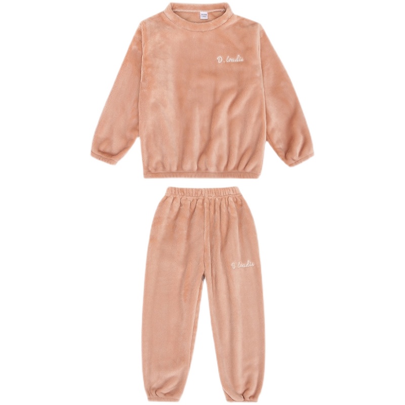 儿童大人法兰绒睡衣套装珊瑚绒长款宝宝男孩女童秋冬季家居服裤