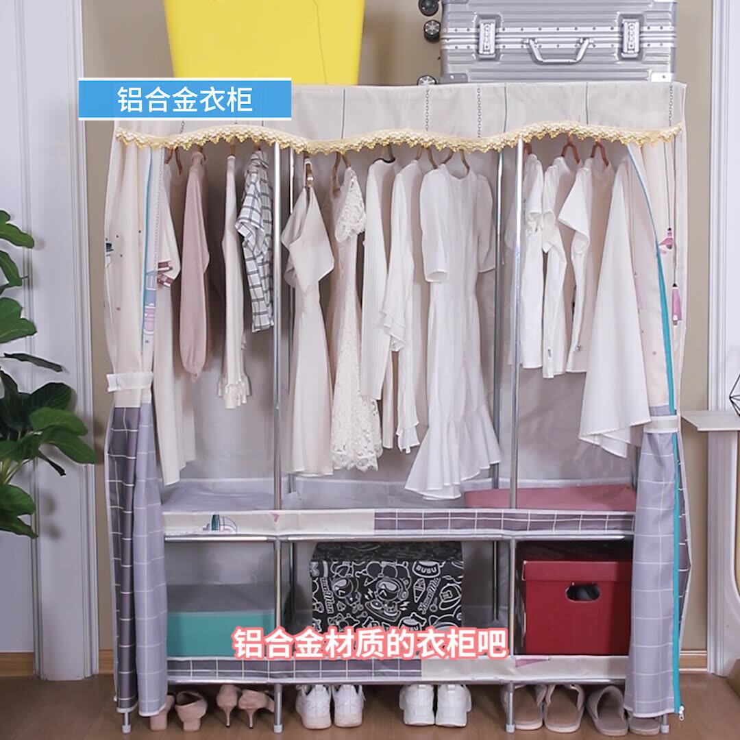 包邮布衣柜家用卧室结实耐用简易小衣柜出租房组装加厚加粗全钢架