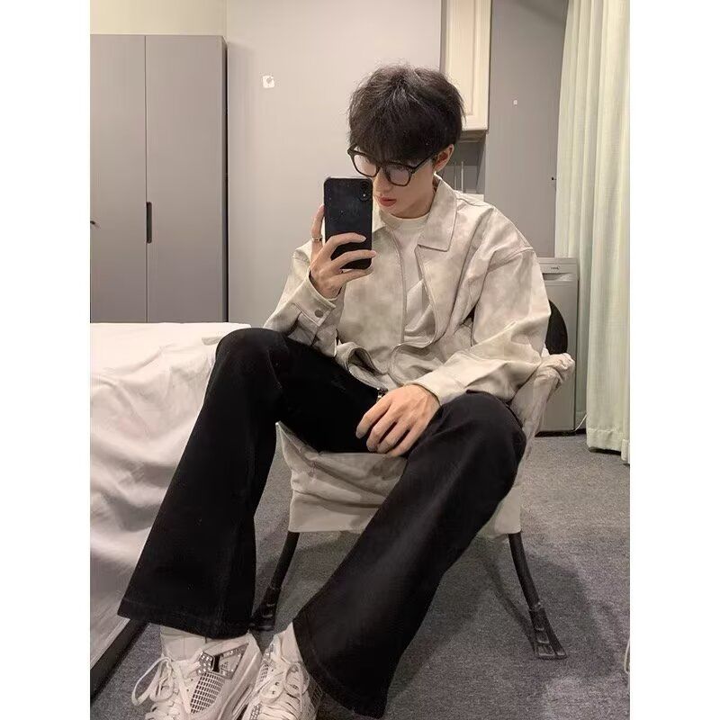 cleanfit灰色短款皮衣外套美式痞帅高级感男装复古翻领机车皮夹克