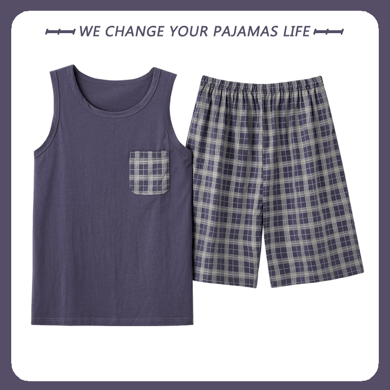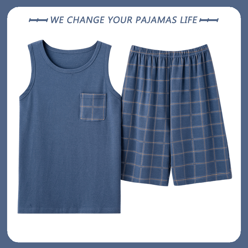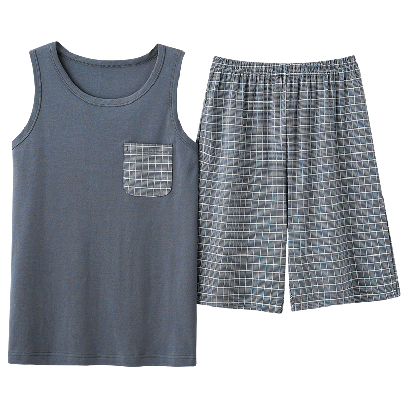 睡衣男士夏季纯棉薄款无袖背心短裤两件套装简约宽松高级感家居服