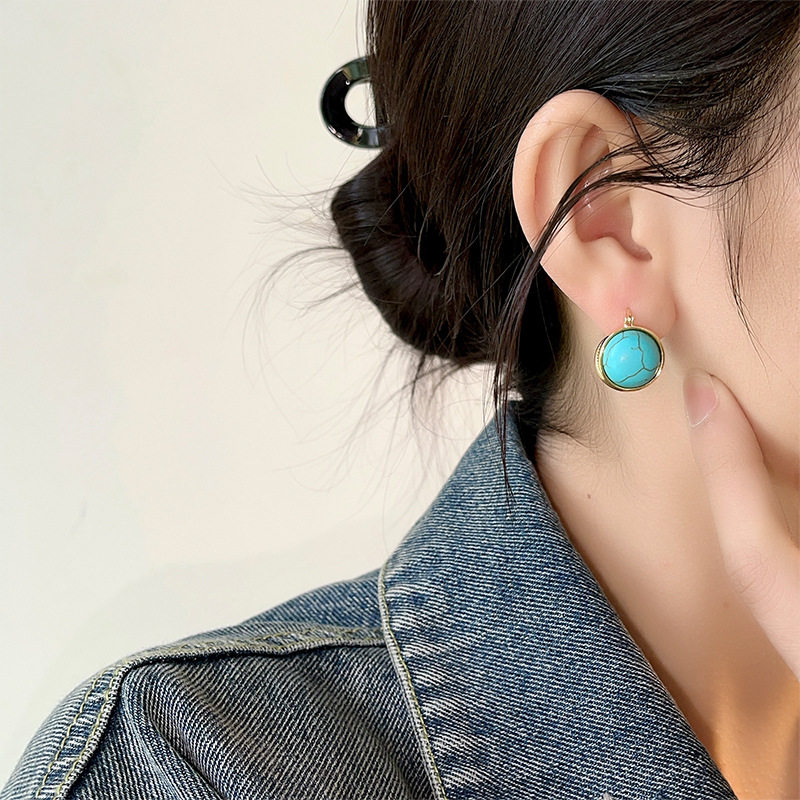 新中式复古轻奢绿松石气质耳扣高级感小众设计独特百搭耳环耳饰