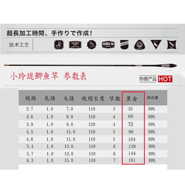 新款直销小玲珑鲫鱼竿碳素2.7 .9 4.5 5.4米细钓鱼杆轻长节台钓竿