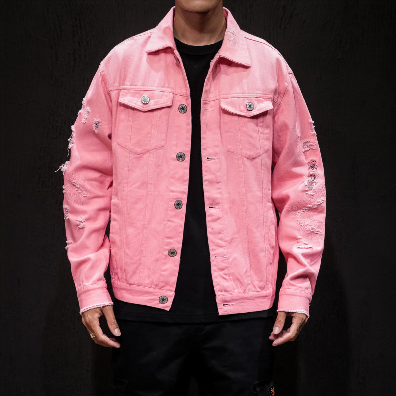 秋装新款韩版男士修身纯色休闲短款牛仔衣服夹克破洞刺绣大码外套