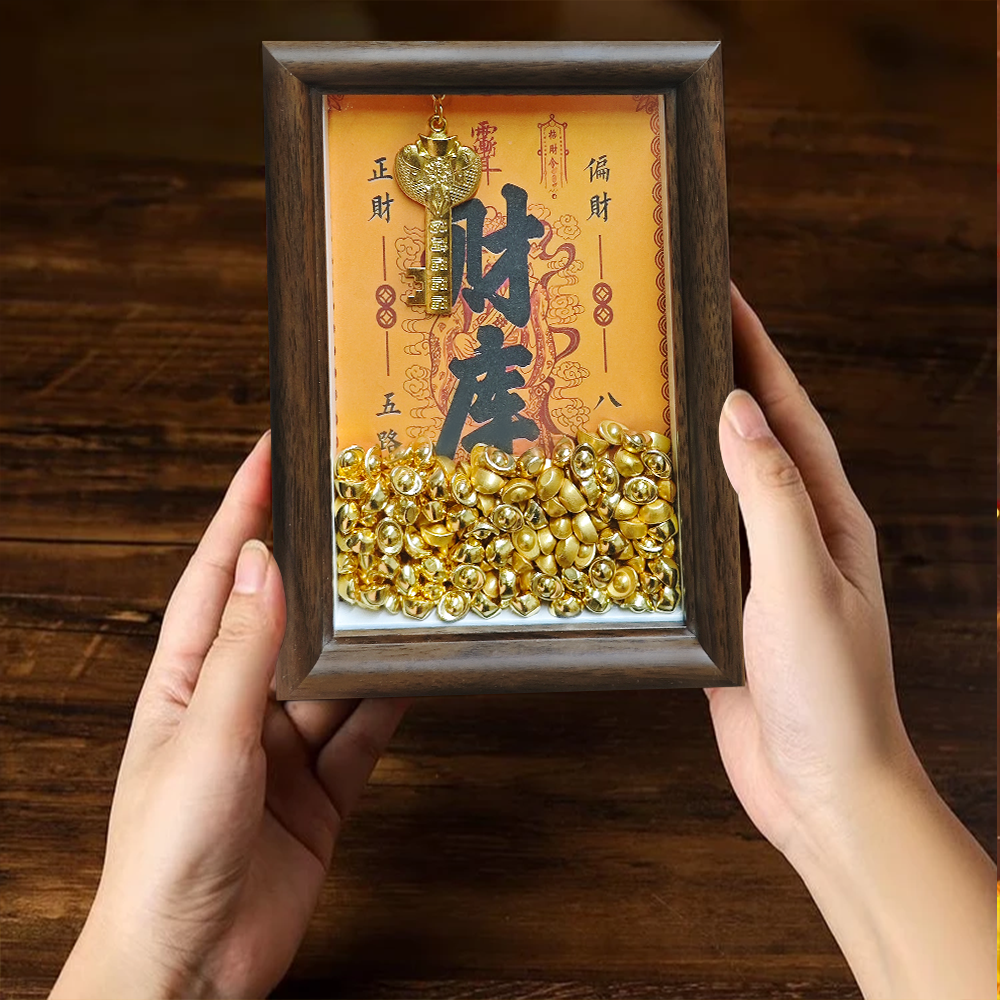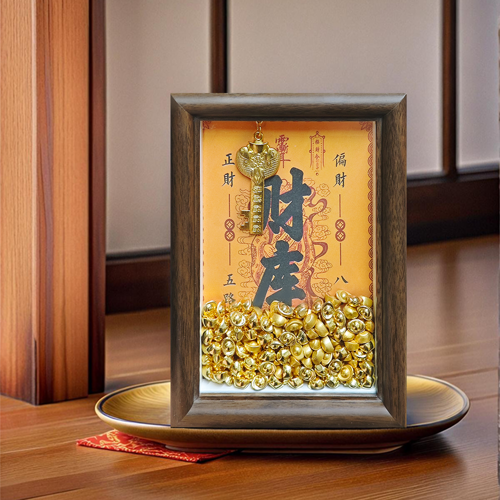 开金库黄财库相框办公室工位摆件十二生肖金钥匙招财物件财神1217
