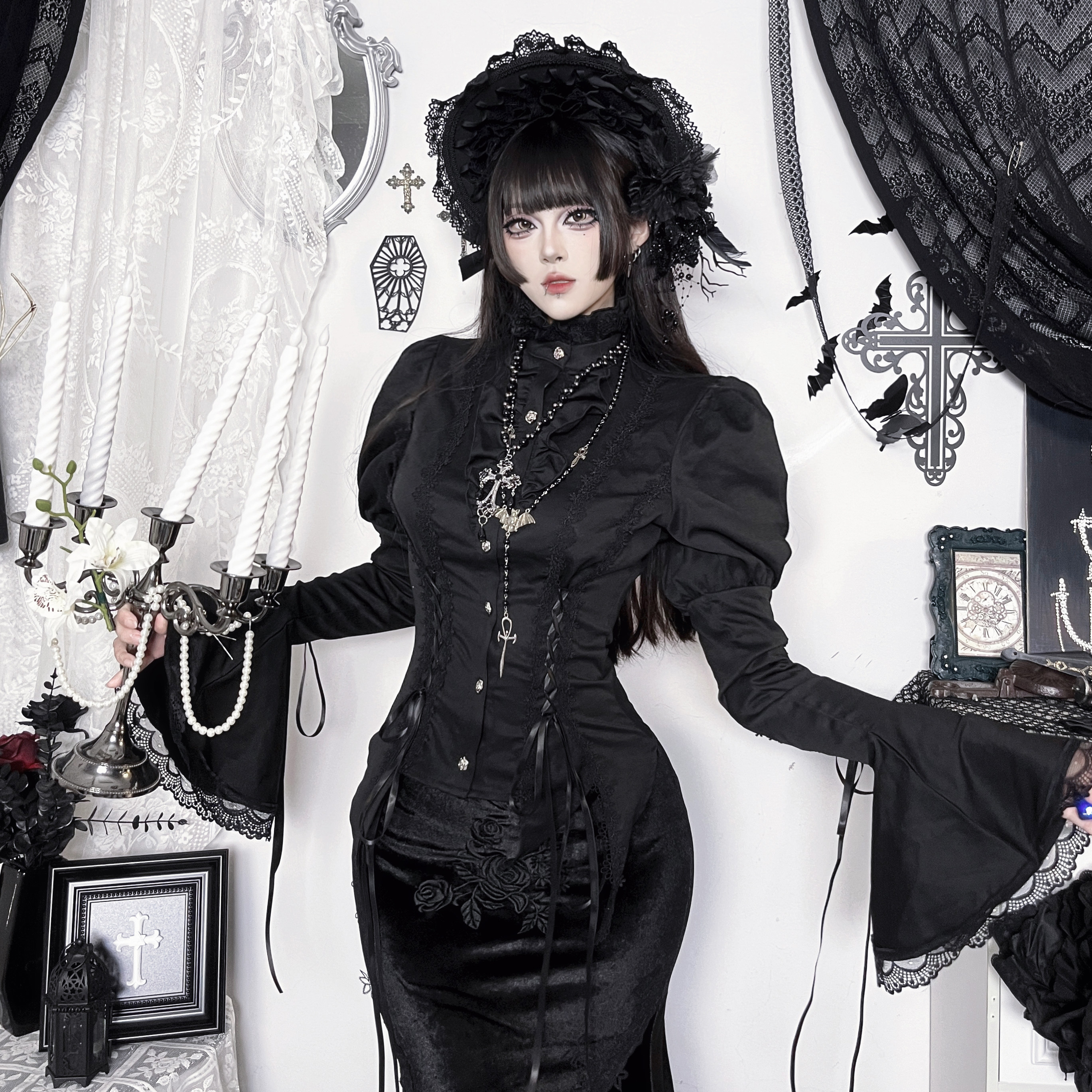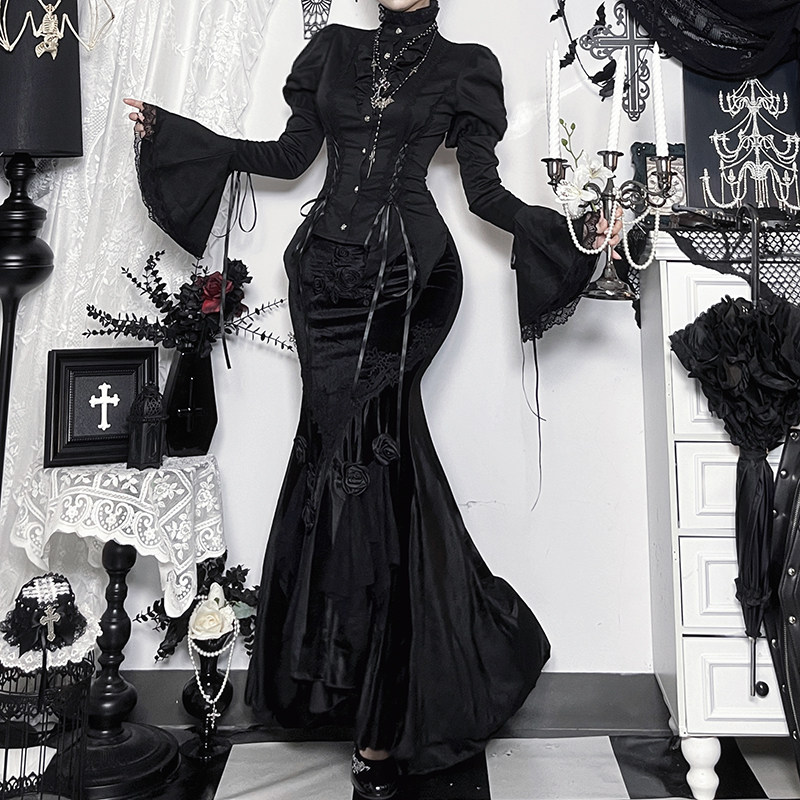 希与STUDIO哥特风暗黑系黑寡妇万圣节cos鱼尾连衣裙女御姐长裙