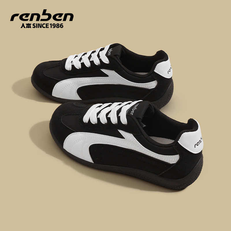 人本黑色德训鞋女2025秋冬季新款复古轻便软底不累脚休闲平底板鞋