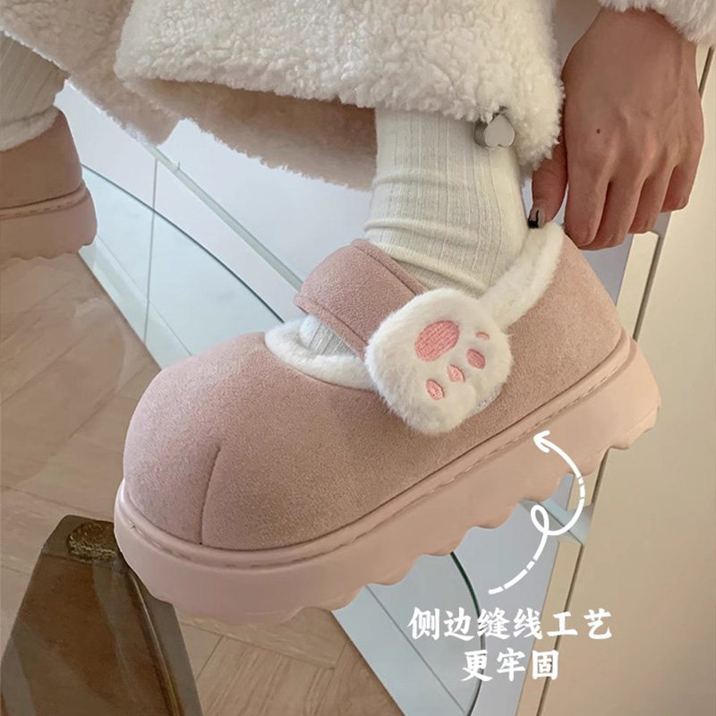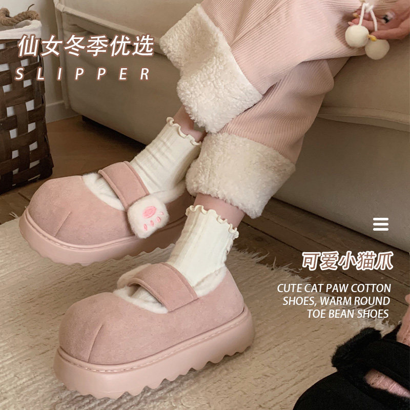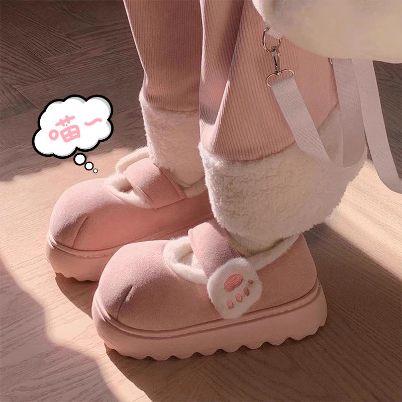 细细条可爱猫爪厚底防滑棉拖鞋女生冬季室内外保暖全包跟毛绒棉鞋