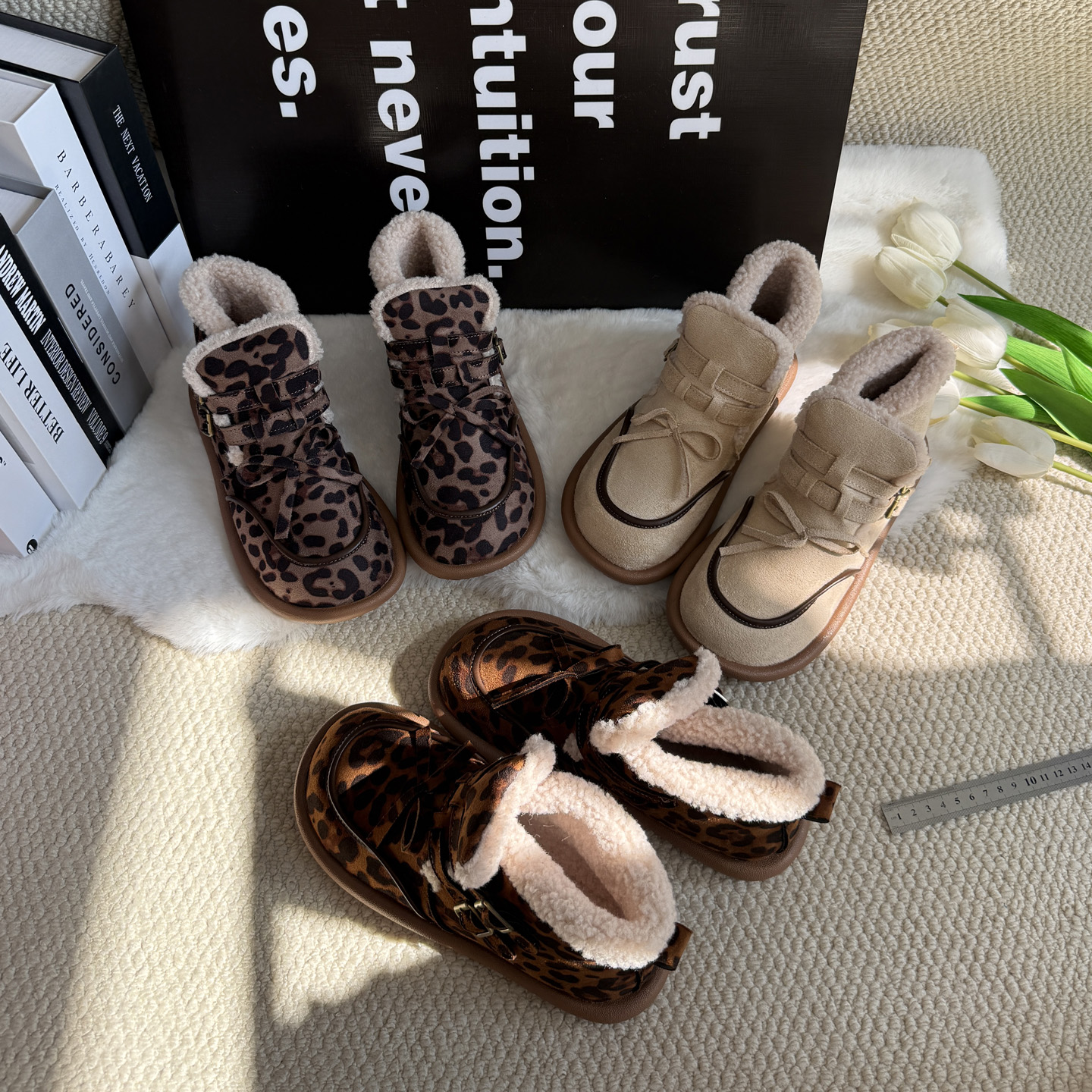 森系豹纹雪地靴女2025新款马丁靴