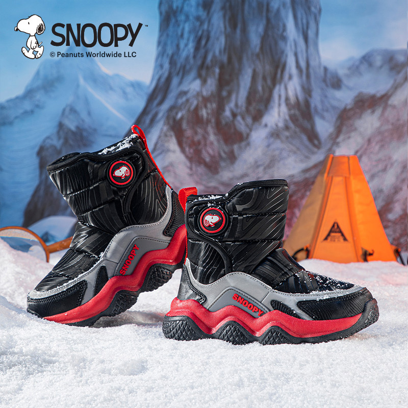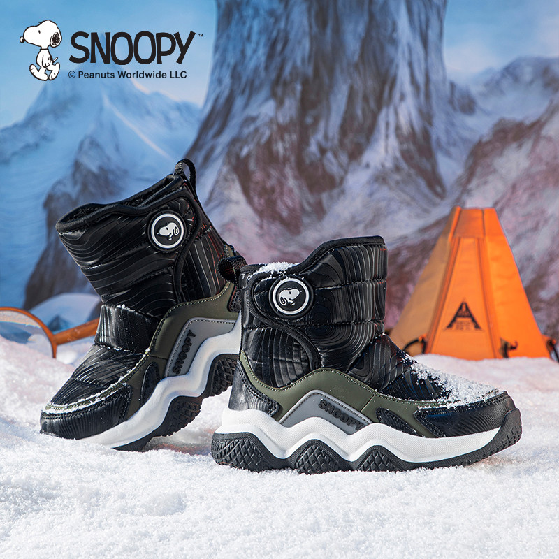 史努比童鞋儿童大棉靴雪地靴2025新款冬季男童加绒加厚保暖大棉鞋