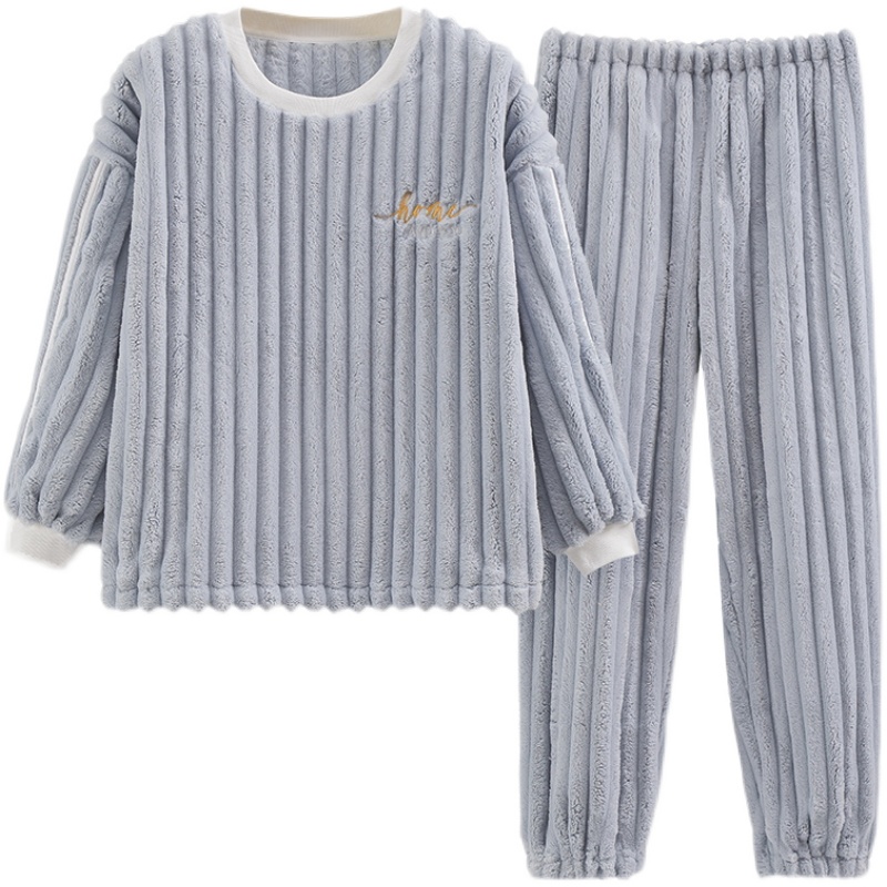 女法兰绒珊瑚绒加厚加绒睡衣套装