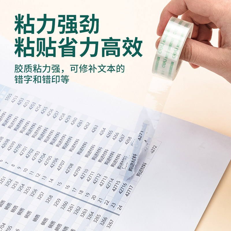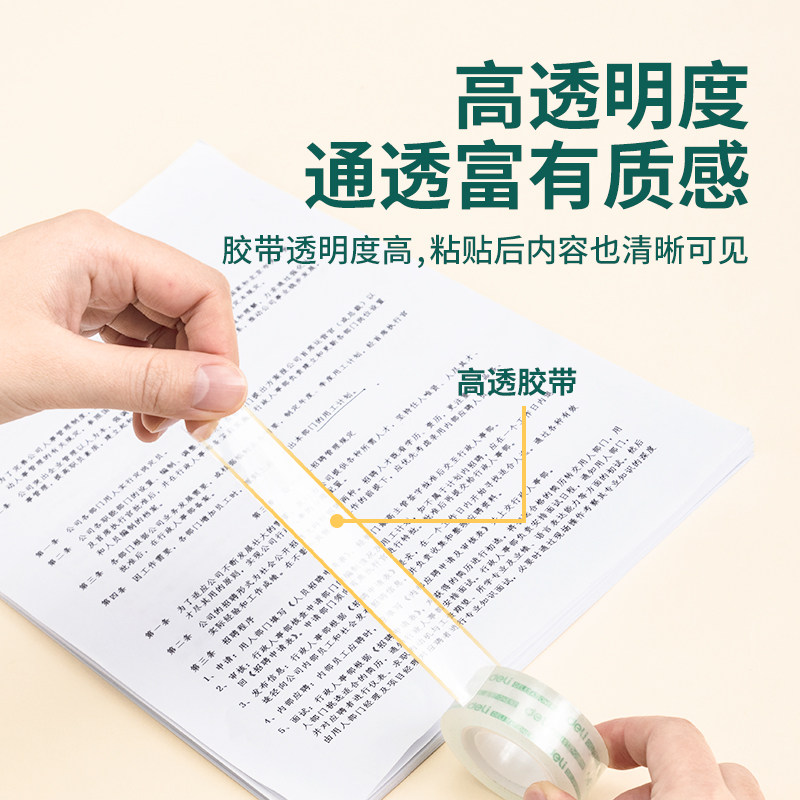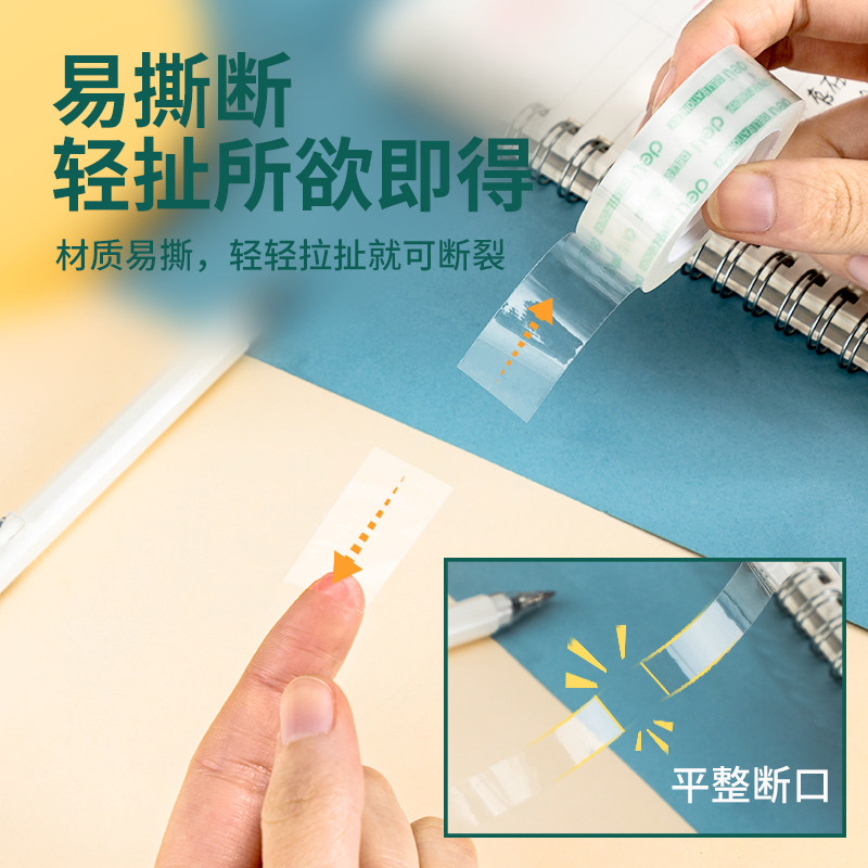 得力透明胶带学生用可爱文具小胶带12mm作业改错题可粘字胶布