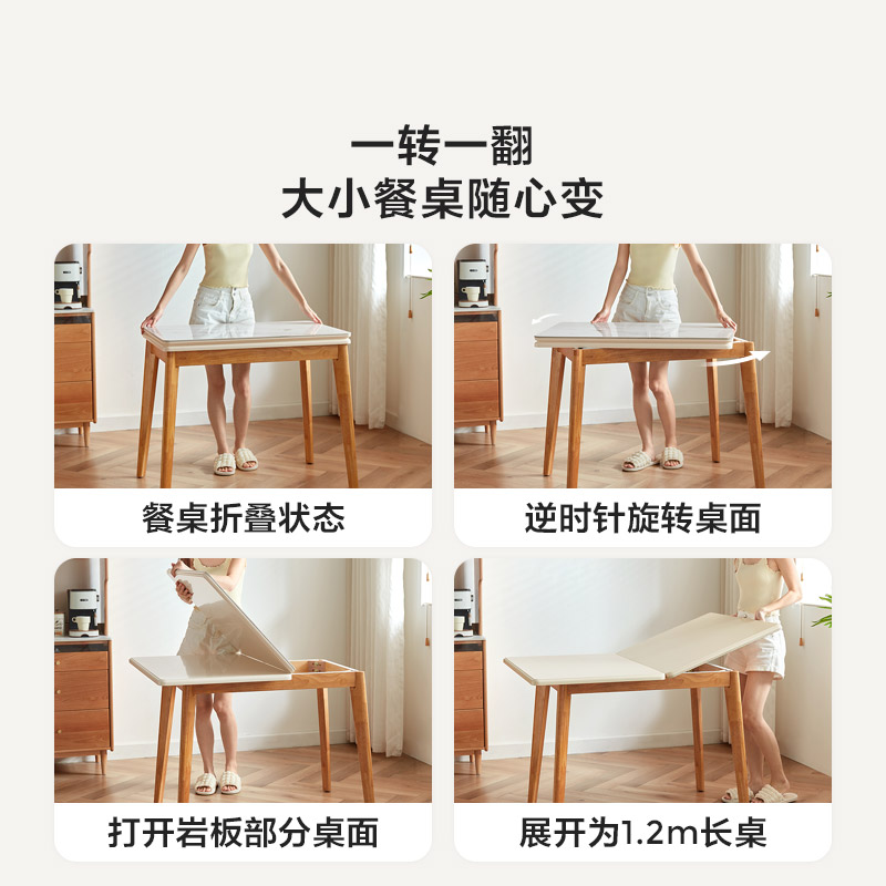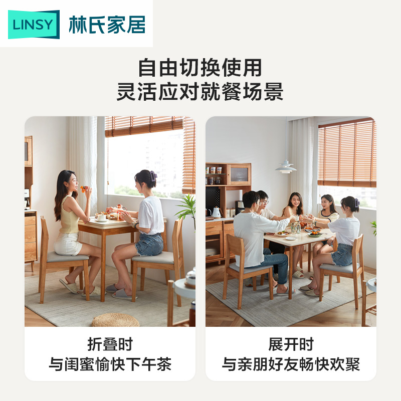 林氏家居北欧日式桌类可折叠岩板餐桌椅子小户型餐桌