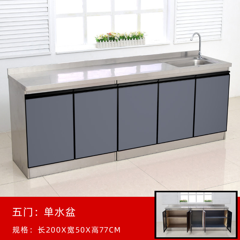 2.4米不锈钢厨房橱柜灶台柜一体柜组合家用储物碗柜整体简易租房