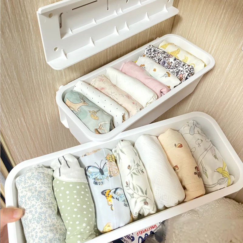 一隅一舍免打孔口水巾收纳神器抽屉式宝宝方巾收纳盒壁挂儿童衣柜