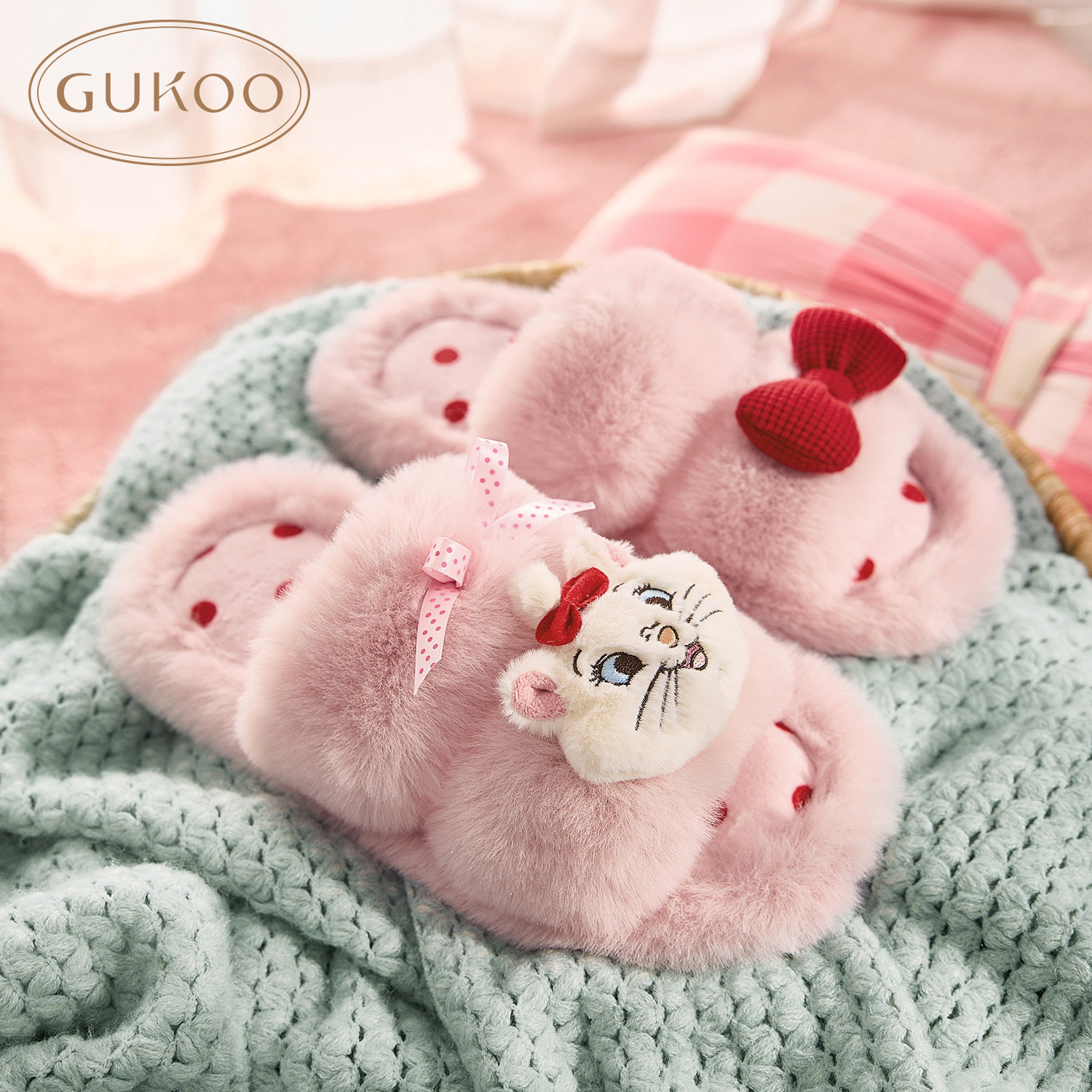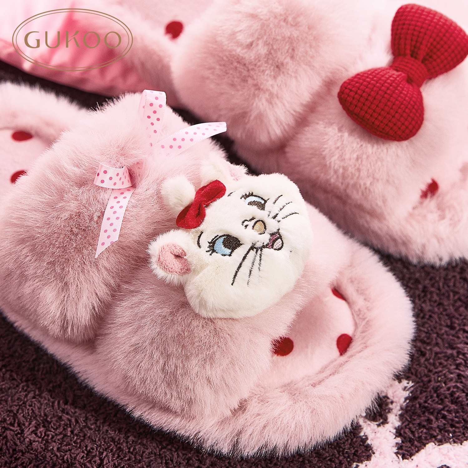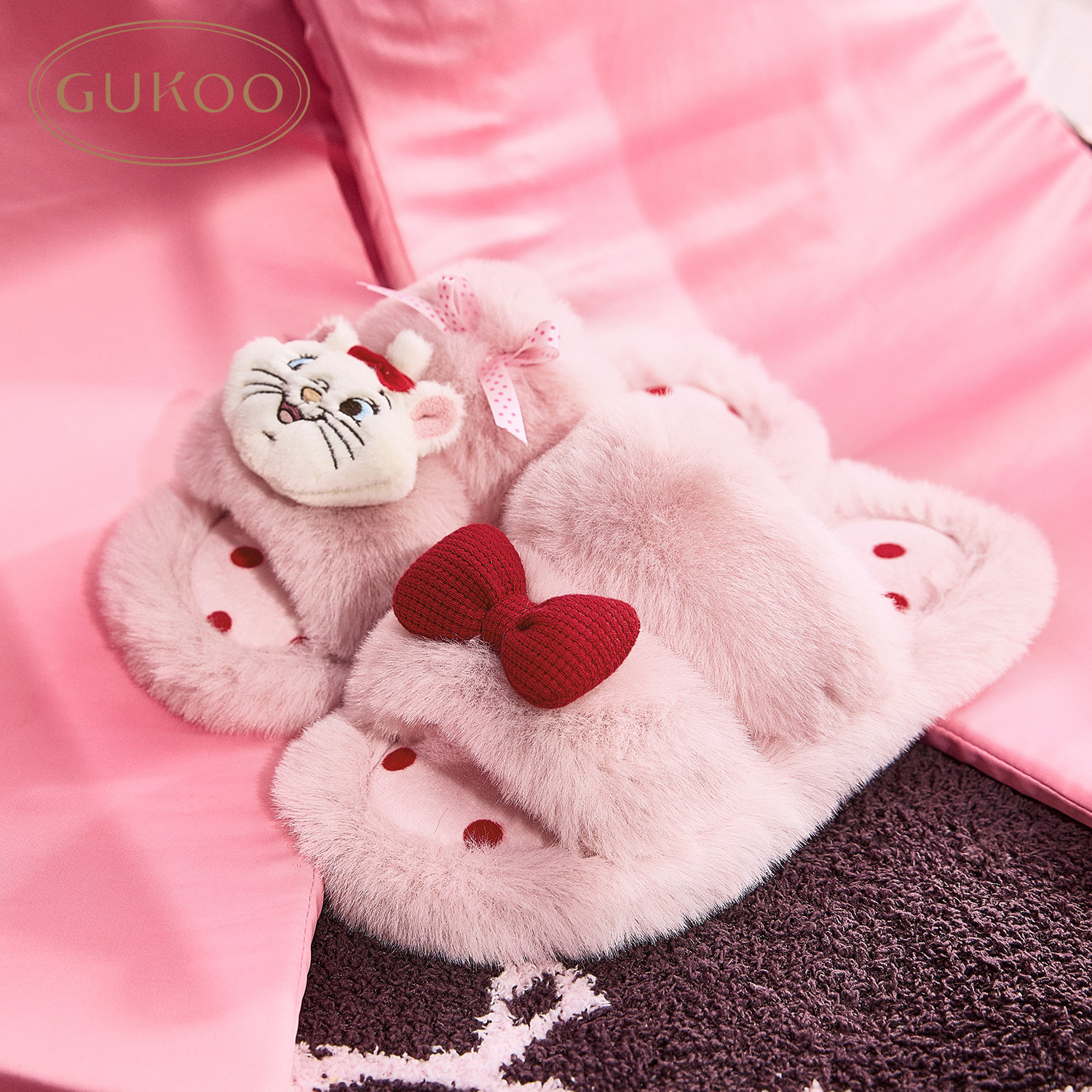 果壳拖鞋女冬季迪士尼联名毛毛拖2025新款毛绒保暖女士居家棉拖鞋