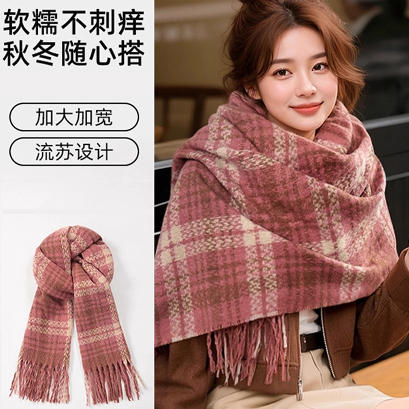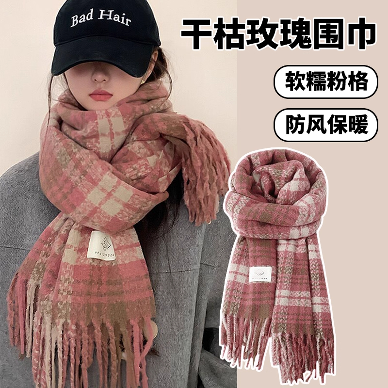 格子围巾女2025冬季新款百搭氛围感保暖加厚围脖仿羊绒高级感披肩