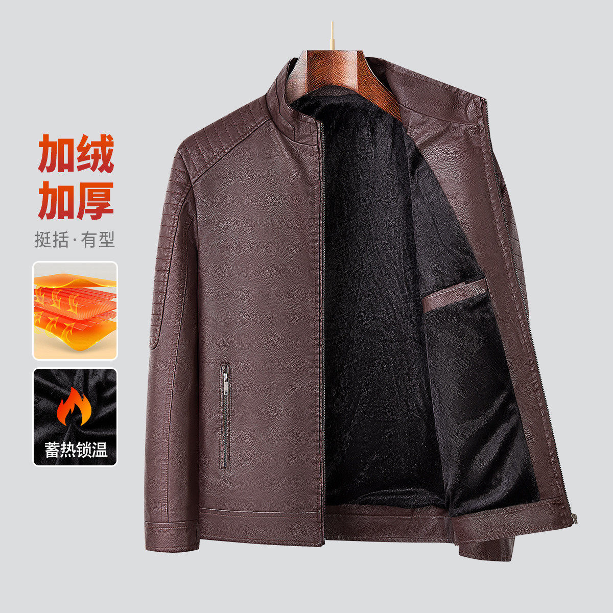杉杉加绒加厚拉链袖口男士皮夹克