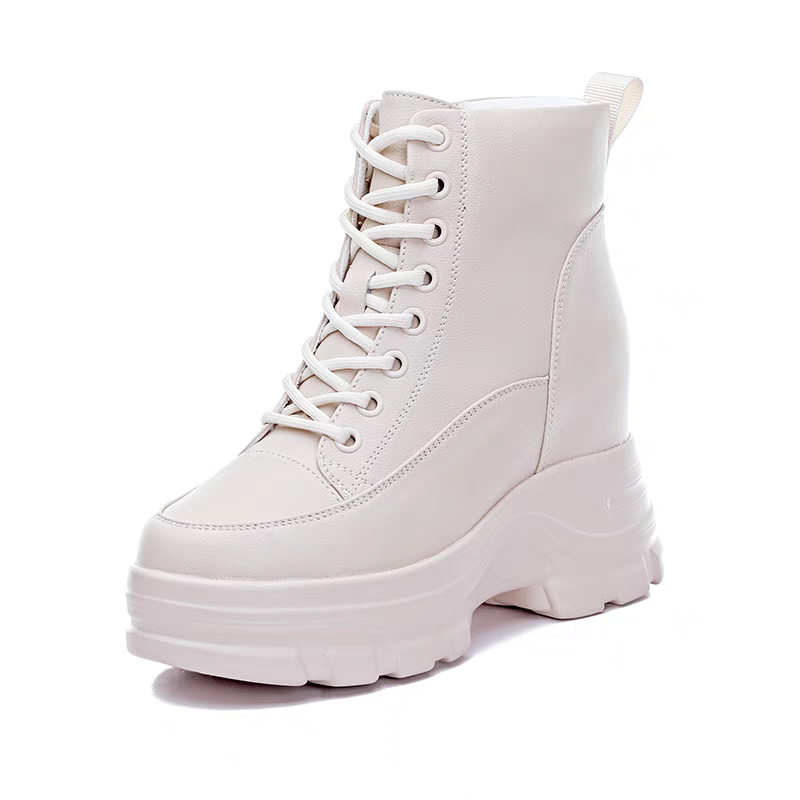 米白色10cm小个子内增高马丁靴女