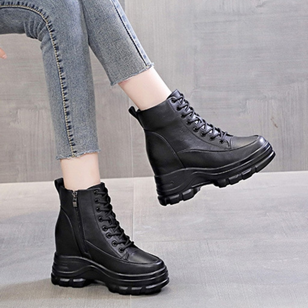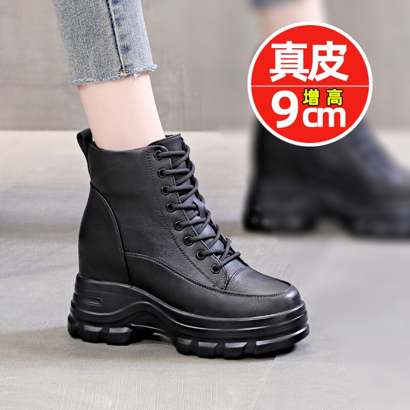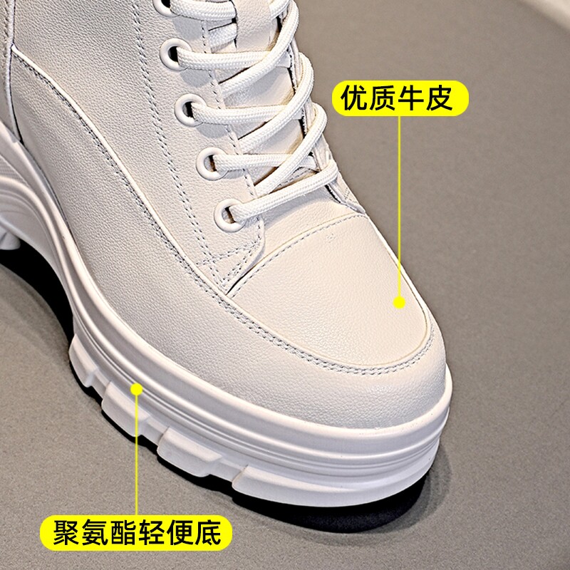 爆款米白色8cm小个子内增高马丁靴女英伦风真皮短靴厚底高跟靴子