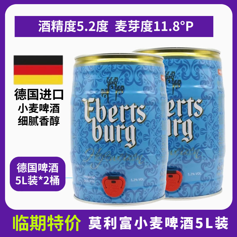 【5L一桶】临期德国原装进口莫利富小麦黑啤酒5L大桶麦芽度11.3度