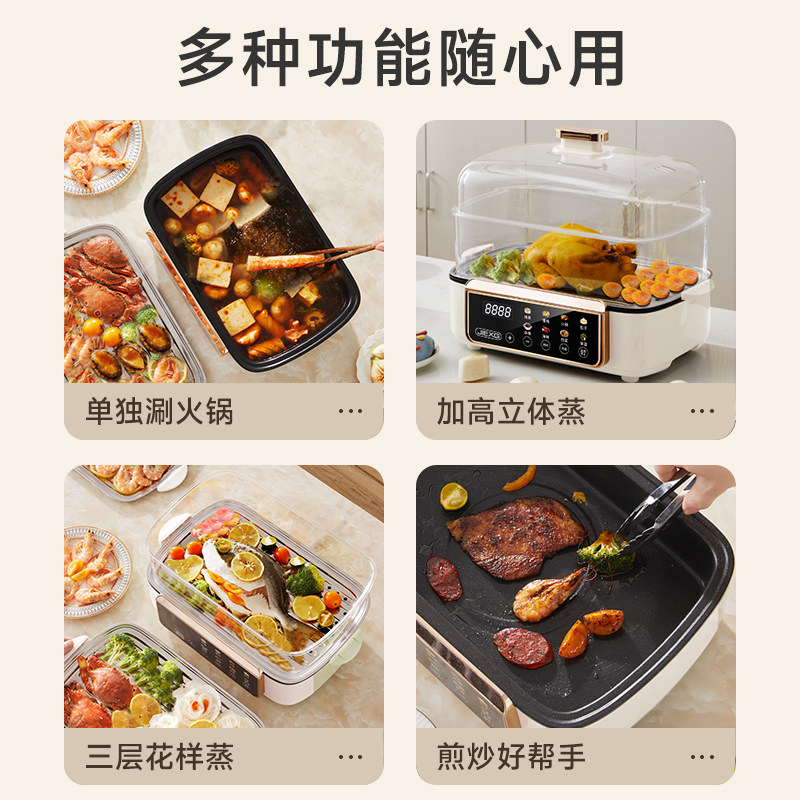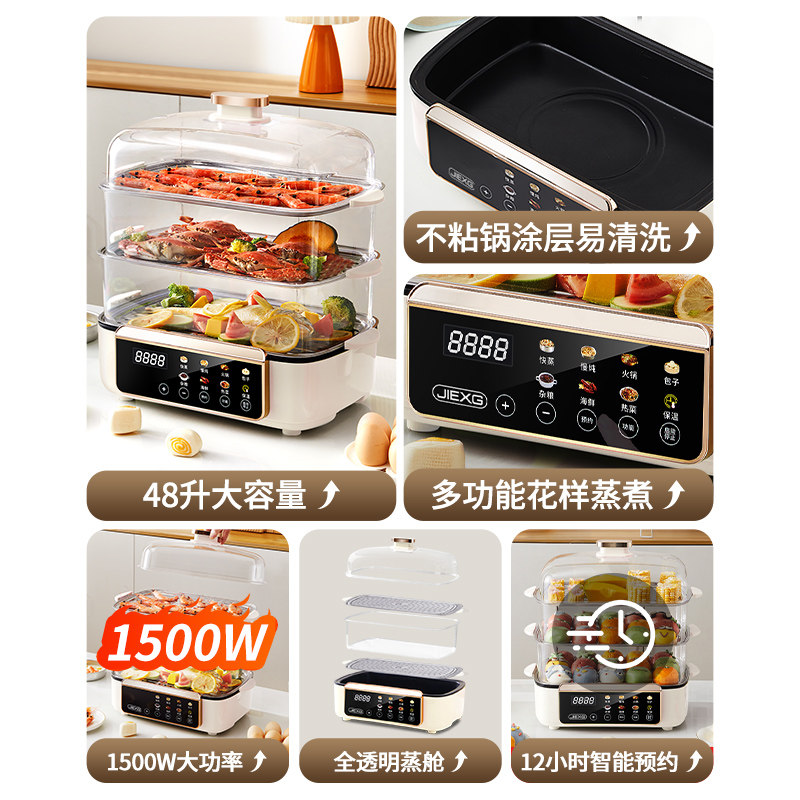 电蒸锅多功能家用三层蒸煮炖一体全自动料理锅大容量早餐2024新款