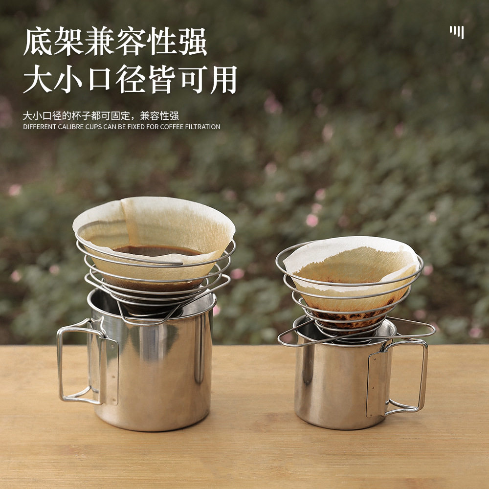 户外露营手冲咖啡v60滤杯便携滴漏式不锈钢弹簧滤架金属过滤器