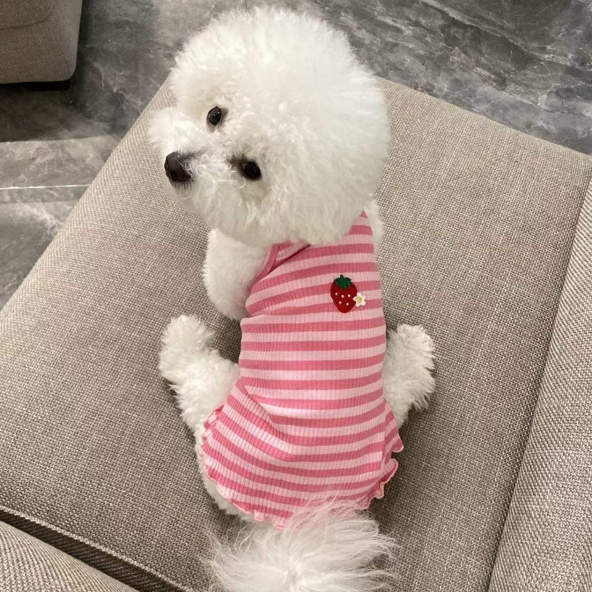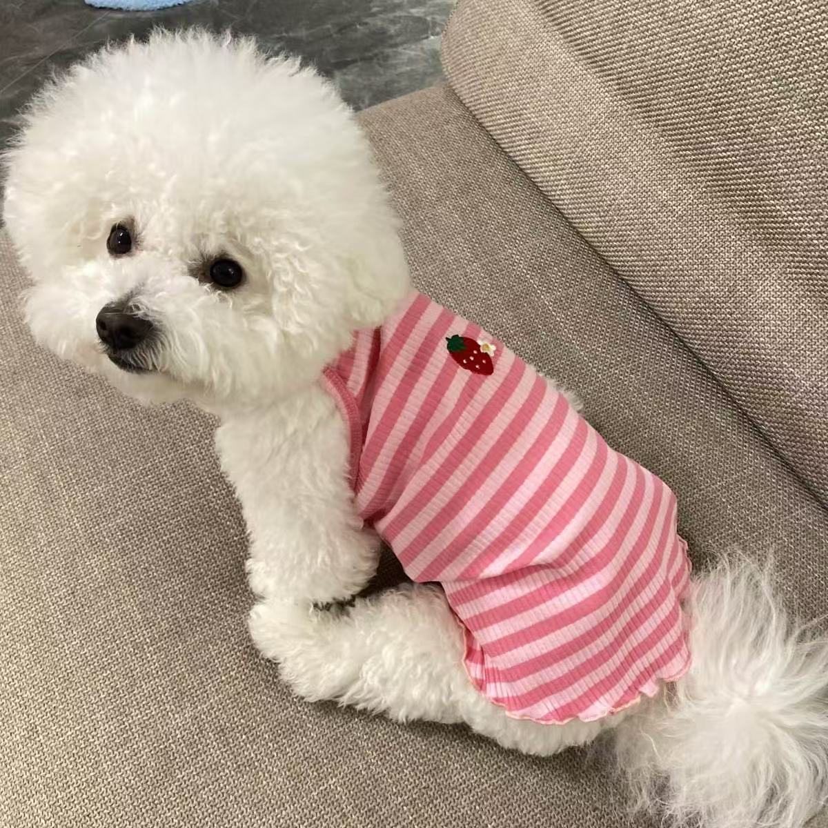 宠物猫咪狗狗衣服夏季薄款小型犬比熊博美泰迪春夏防掉毛条纹背心