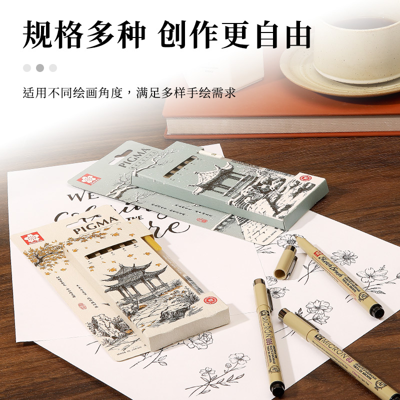 日本文具sakura樱花秋冬限定款针管笔套装樱花笔干后不易晕染漫画描边美术动漫绘画笔