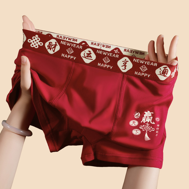 本命年内裤男士纯棉透气平角底裤衩男生红色蛇年送男友四角短裤头