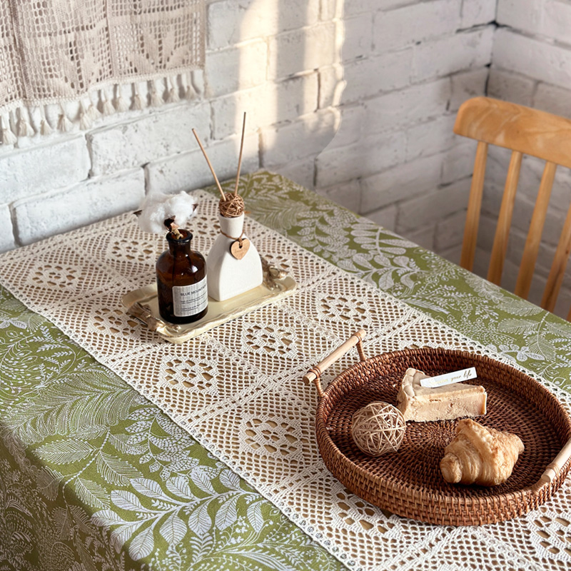 森系树叶碎花棉麻蕾丝桌布布艺复古茶几阳台餐边桌盖巾民宿定做