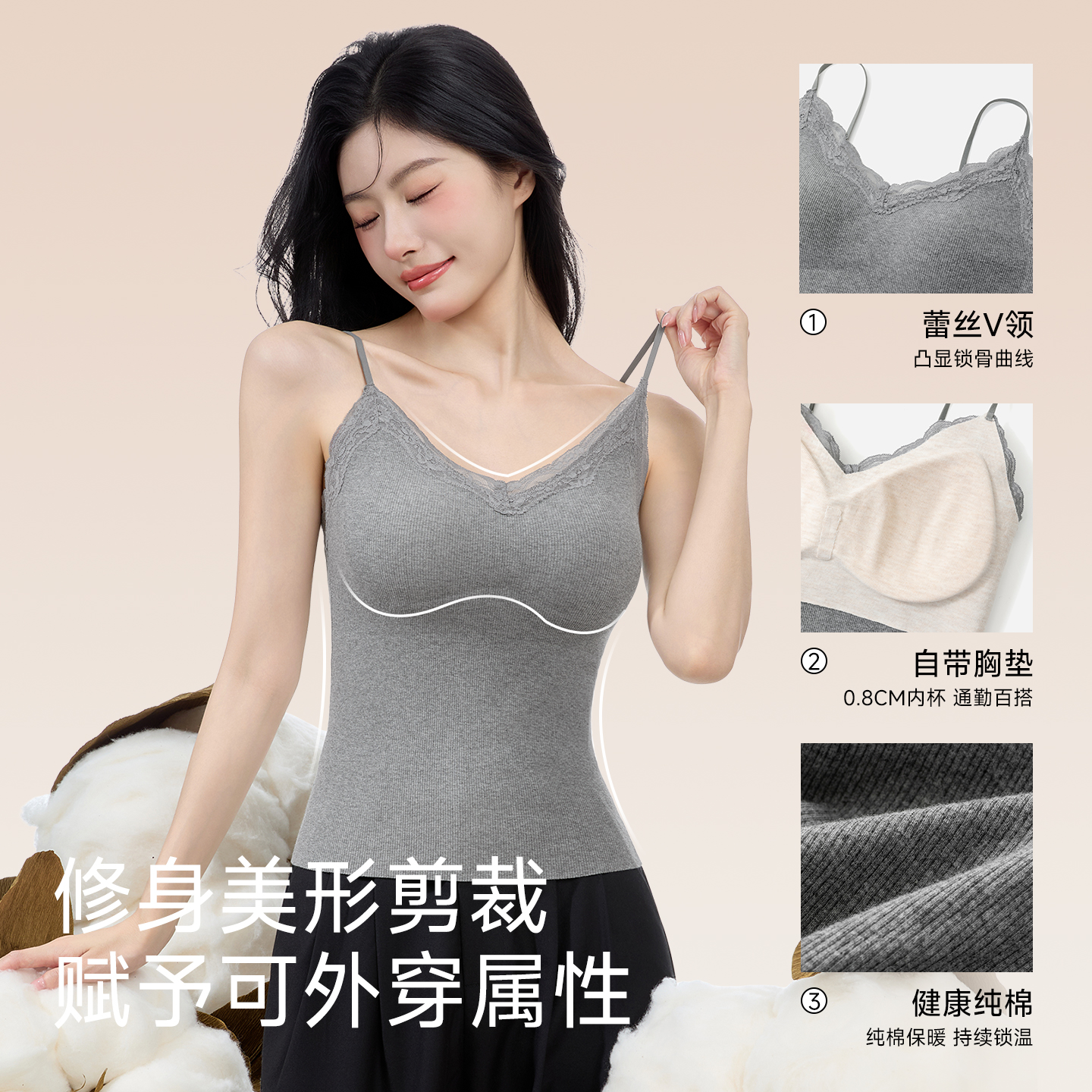 蕾丝纯棉吊带背心女保暖内衣带胸垫一体秋冬内搭可外穿打底衫上衣
