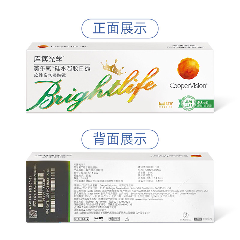 库博光学硅水凝胶美乐氧日抛30片隐形眼镜近视眼镜旗舰店官网正品