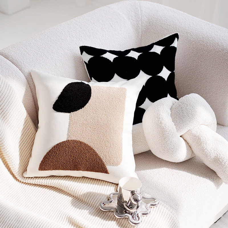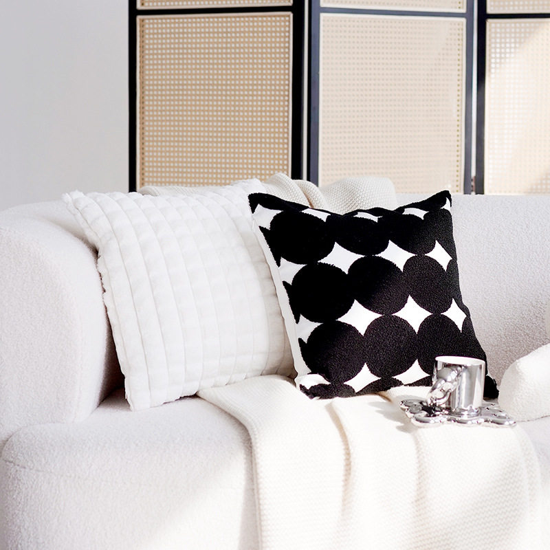 奶油色抱枕套黑白色ins风打结沙发客厅靠垫靠背床上高级现代简约