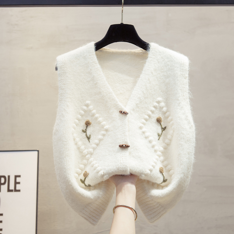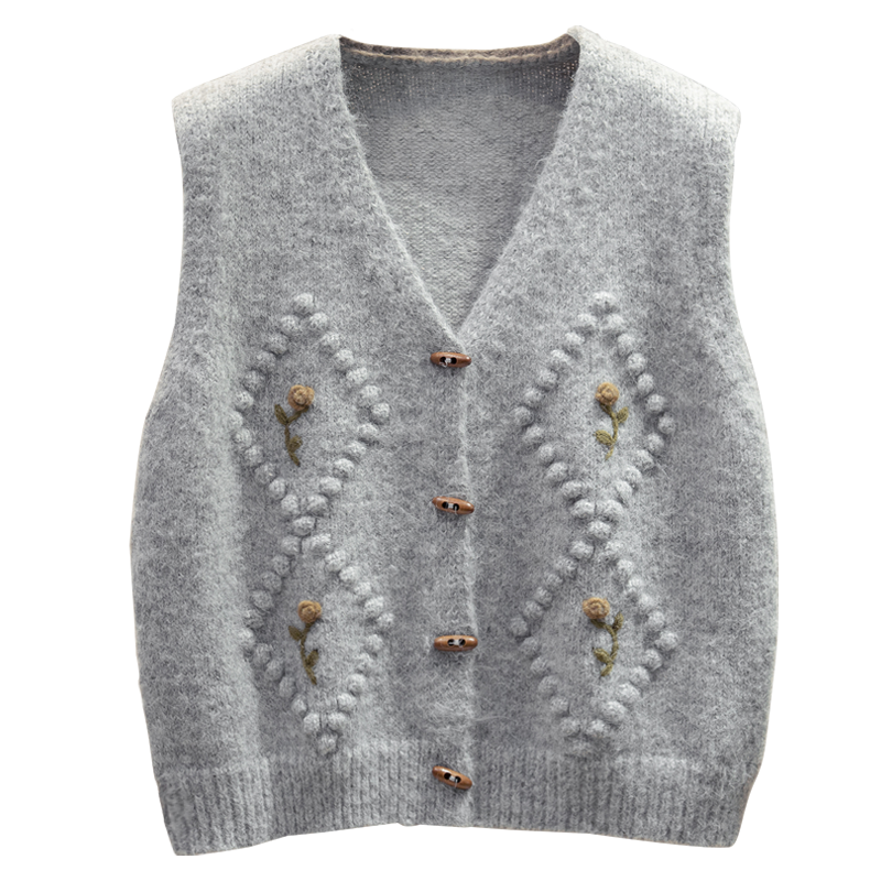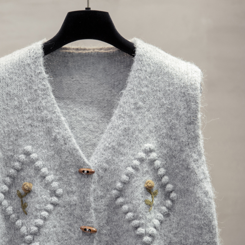 手工花开衫v领针织马甲背心女2025秋冬新款宽松外穿马夹毛衣坎肩