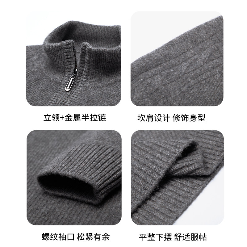 杉杉纯羊毛衣男士2025新款半拉链立领冬季加厚内搭针织外穿打底衫