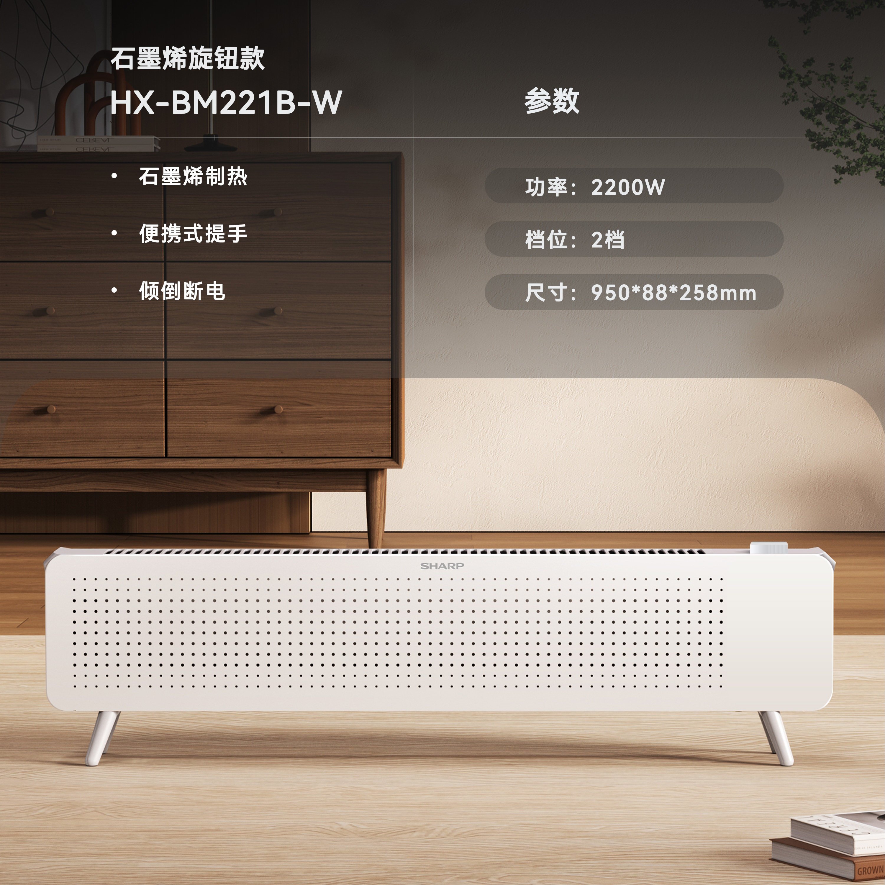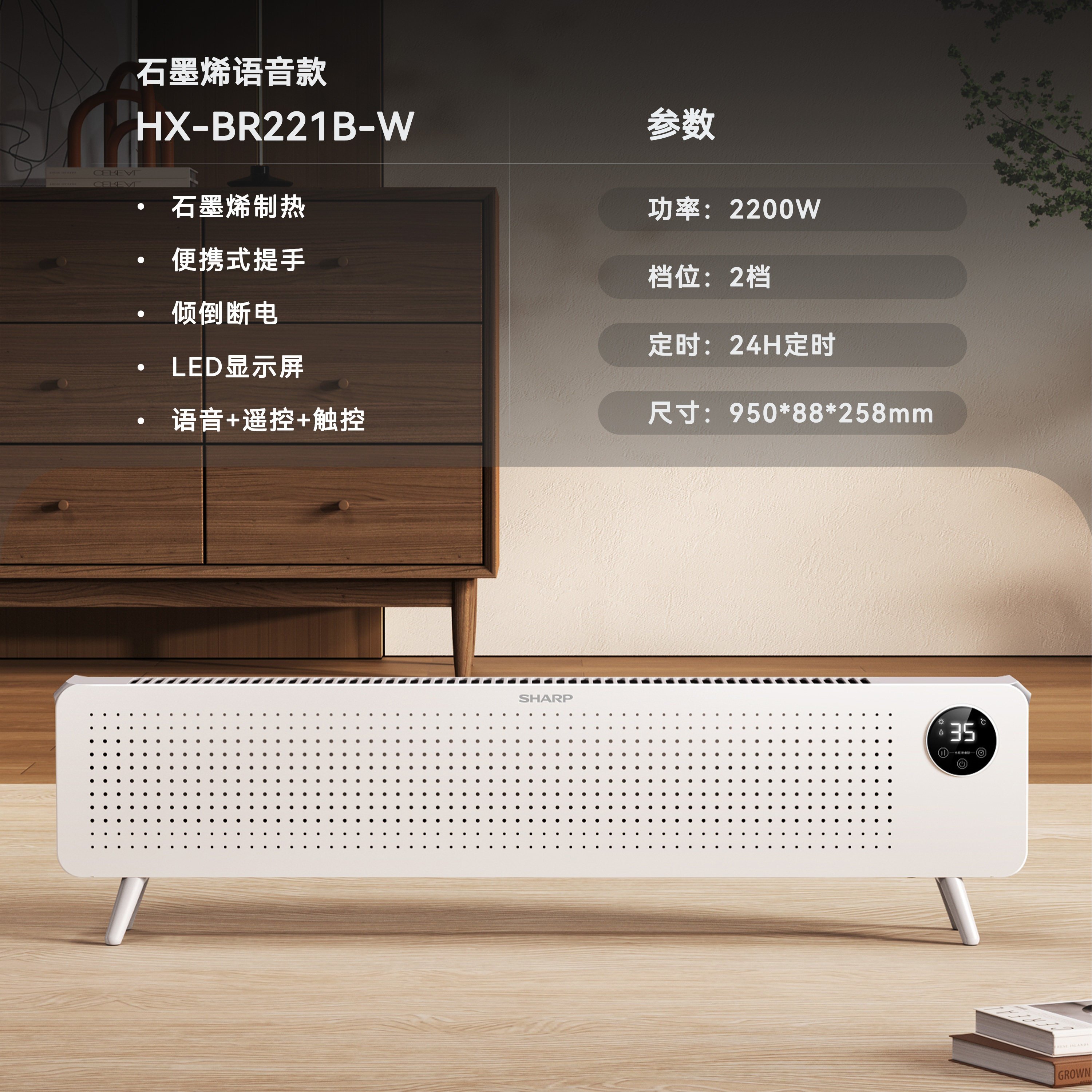 夏普踢脚线取暖器家用节能电暖气石墨烯暖风机片冬季神器2025新款