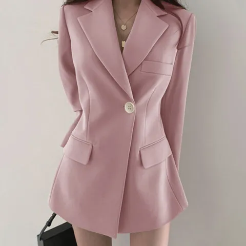 中长款外套西装港风收腰女复古韩版小西服春秋显瘦卡其色ins上衣