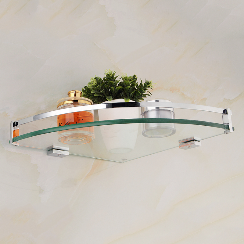洁诺全铜浴室玻璃置物架厨房厕所三角架卫生间转角架挂件单层