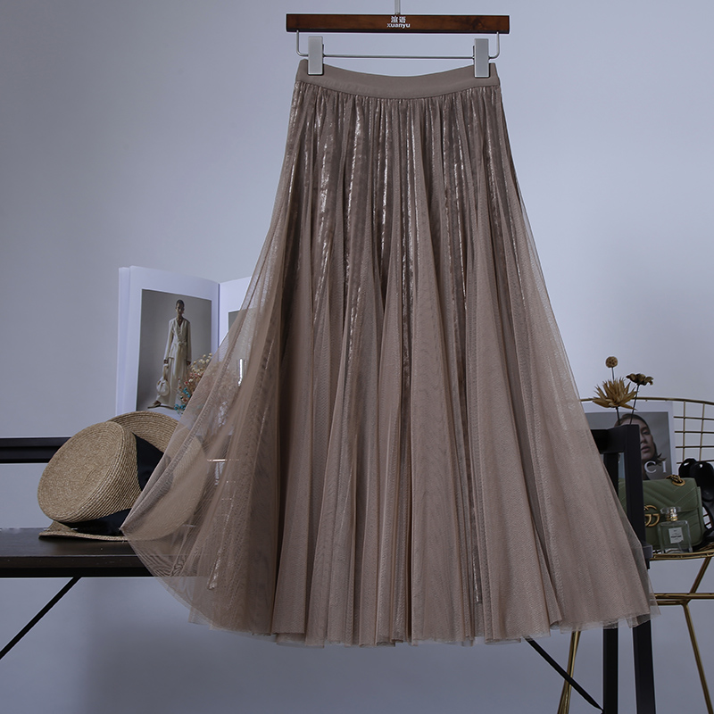 长裙百褶裙A型金丝绒网纱裙