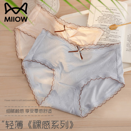猫人女士内裤女纯棉100%全棉抗菌裆夏季薄款中腰透气少女生三角裤