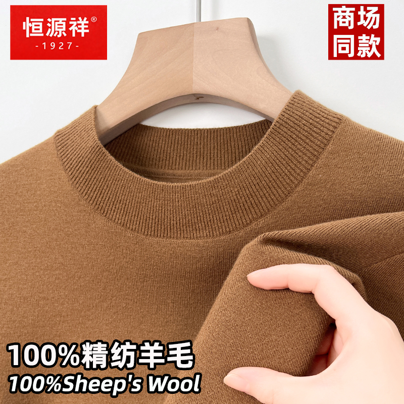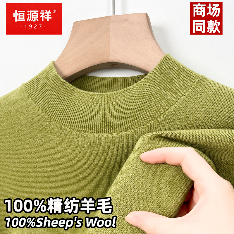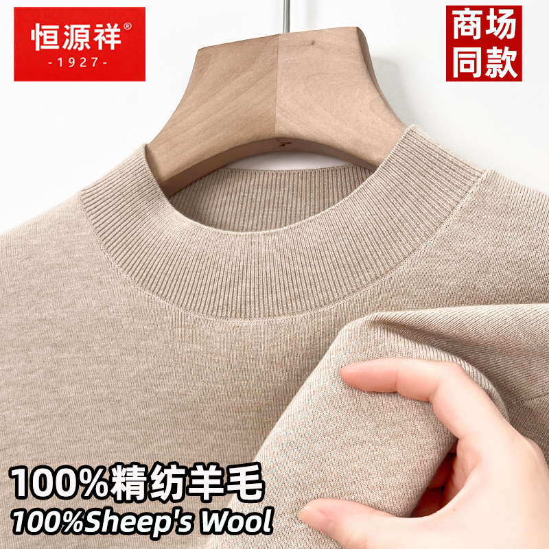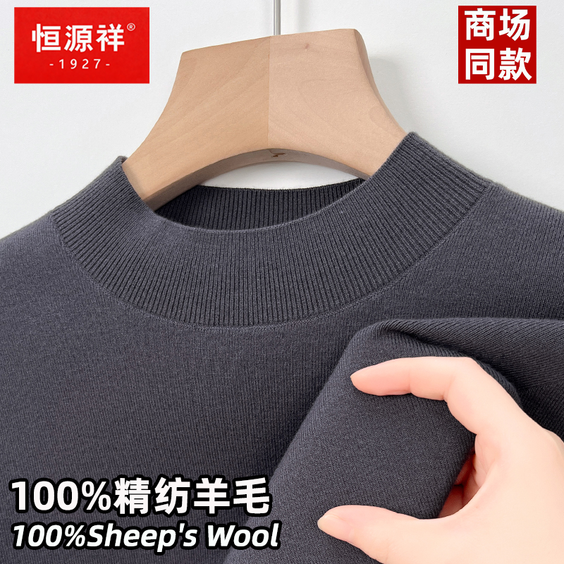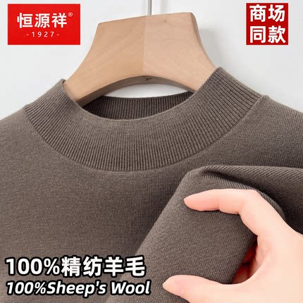 恒源祥100%精纺纯羊毛衫男半高领
