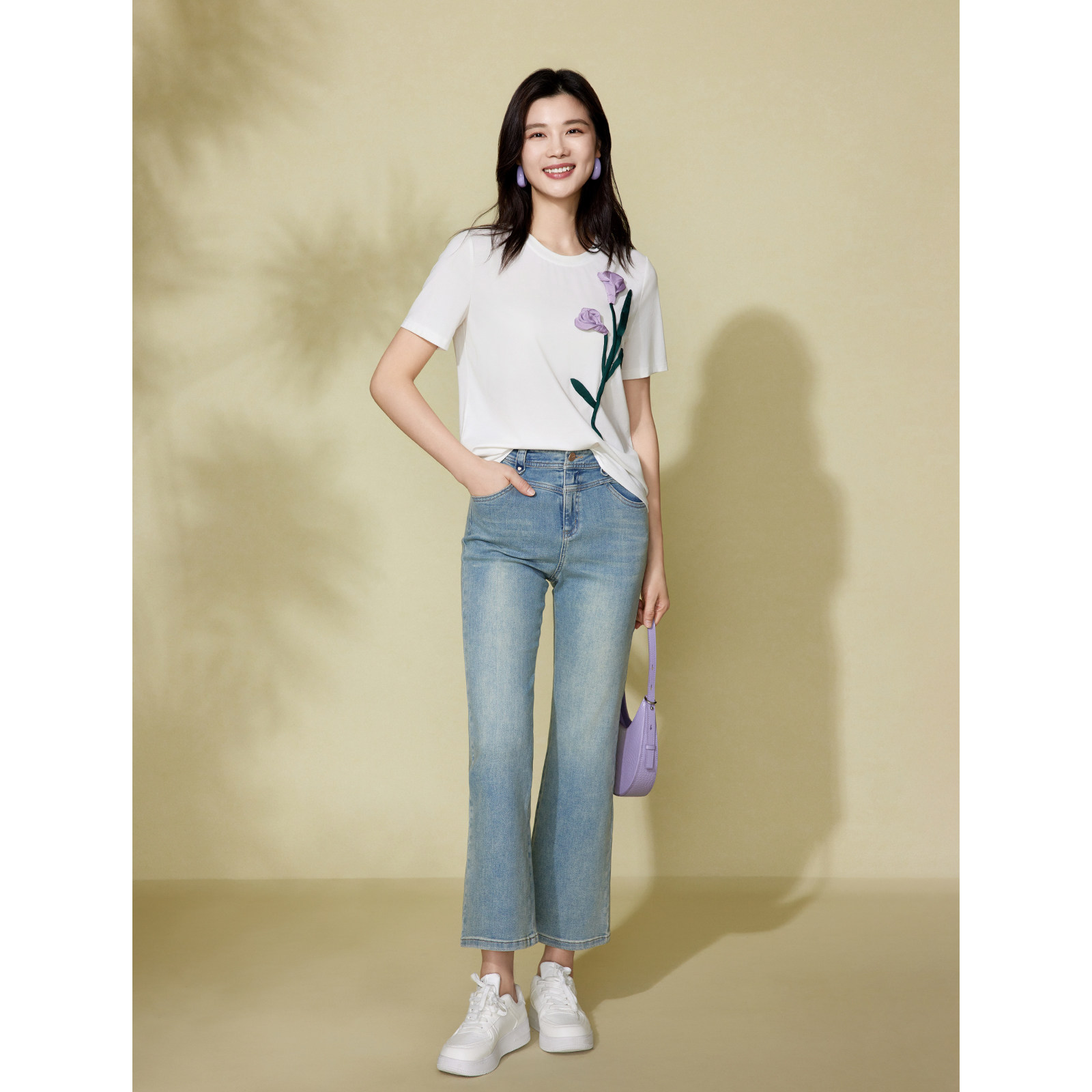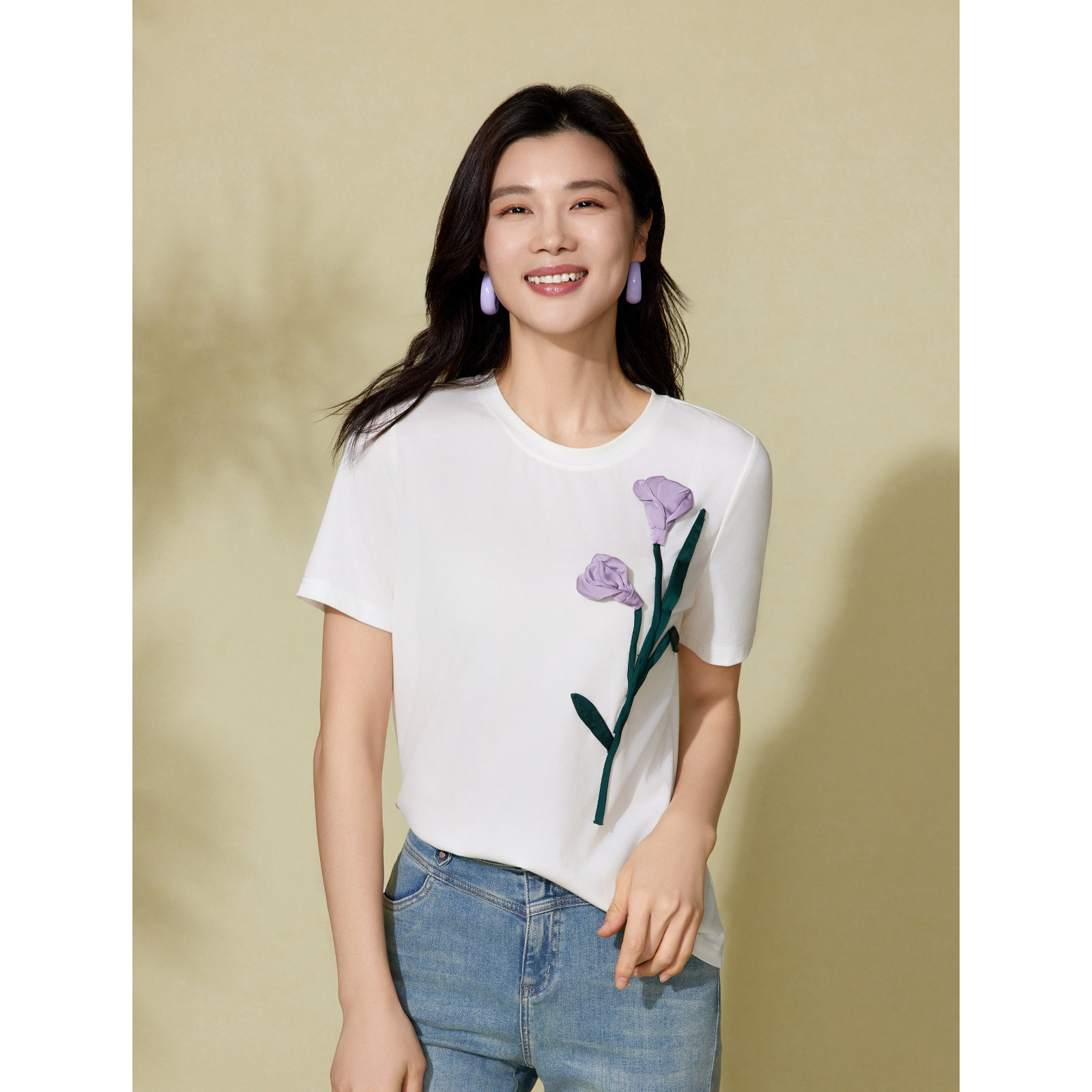 【鸢梦蝶】BBLLUUEE/粉蓝衣橱2025夏装中式全手工立体花短袖T恤女